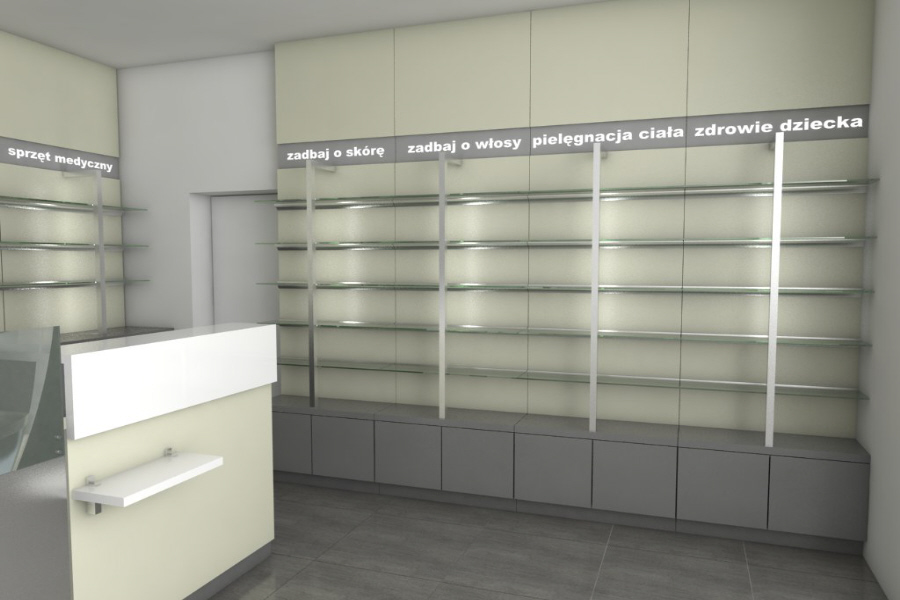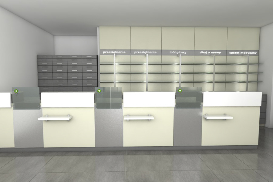 Ponieważ etap projektowania jest dla nas bardzo ważny używamy profesjonalnych systemów komputerowych, dzięki którym tworzymy fotorealistyczne wizualizacje przyszłej apteki. Pozwala to szczegółowo przeanalizować każdy aspekt, uniknąć błędów, oraz osiągnąć satysfakcjonujący naszego klienta efekt.